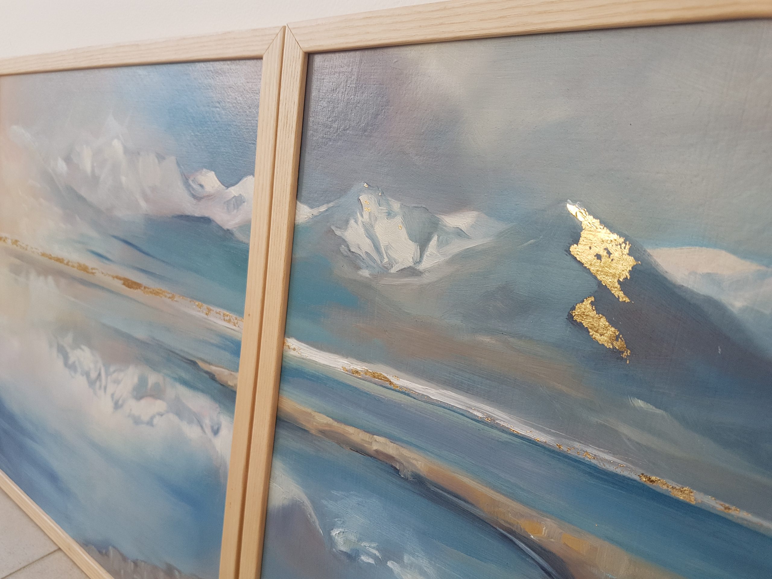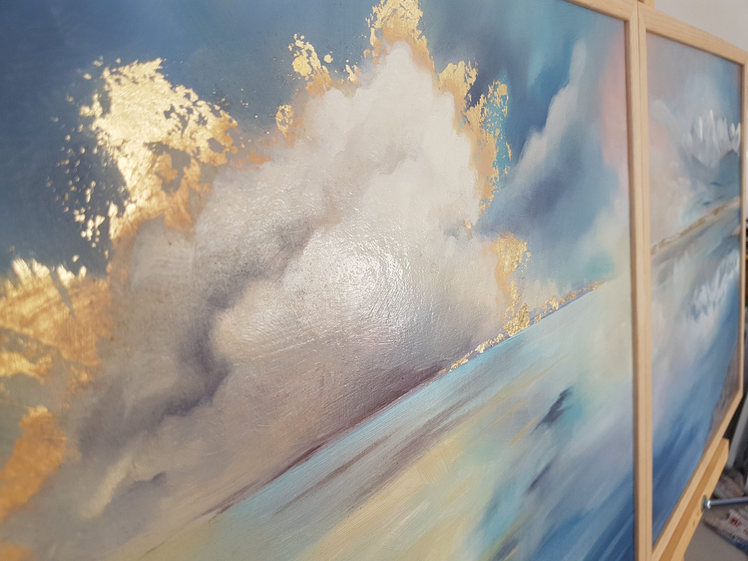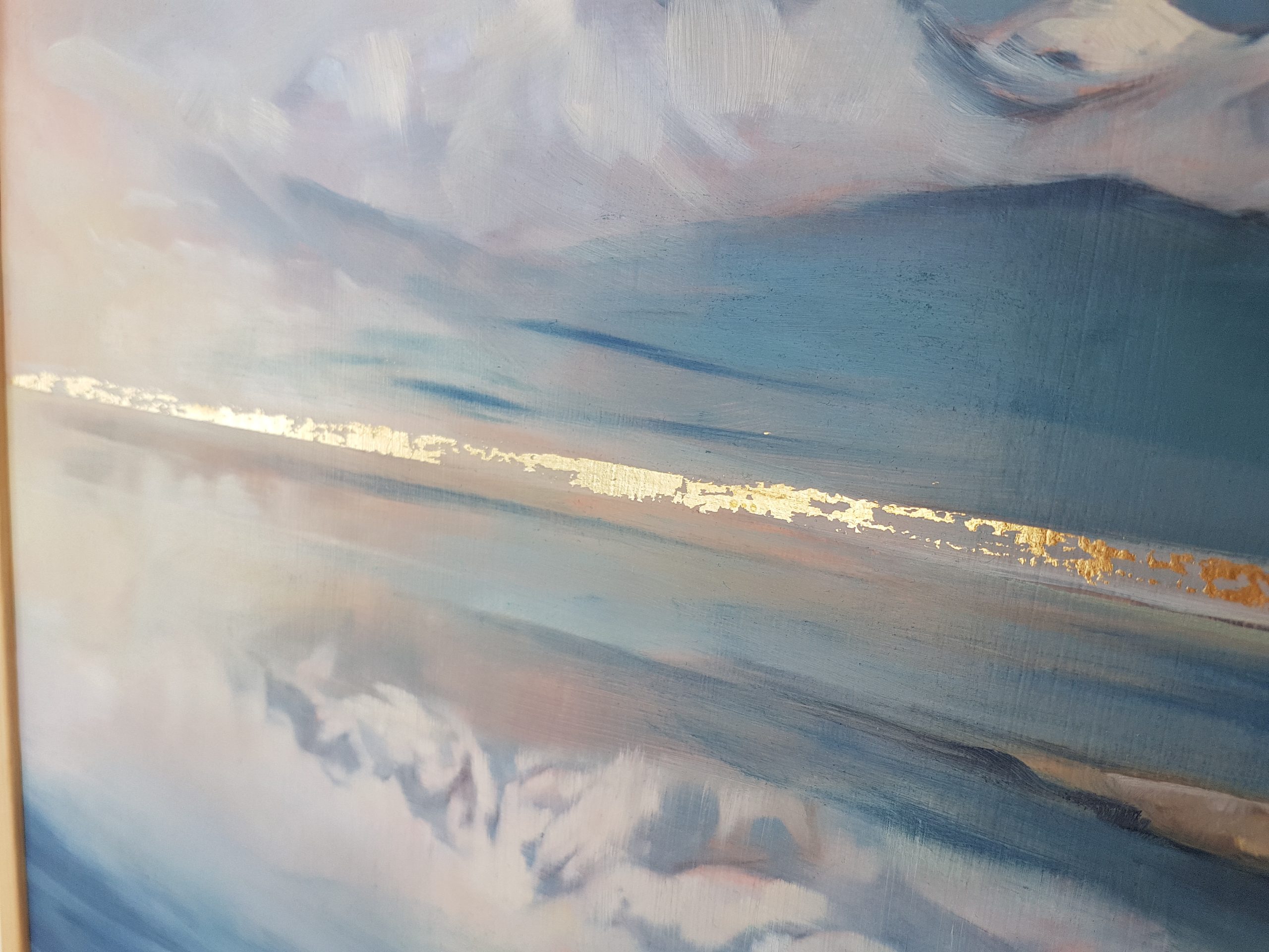 Peinture à l’huile sur bois entoilé avec incrustation de feuilles d’or