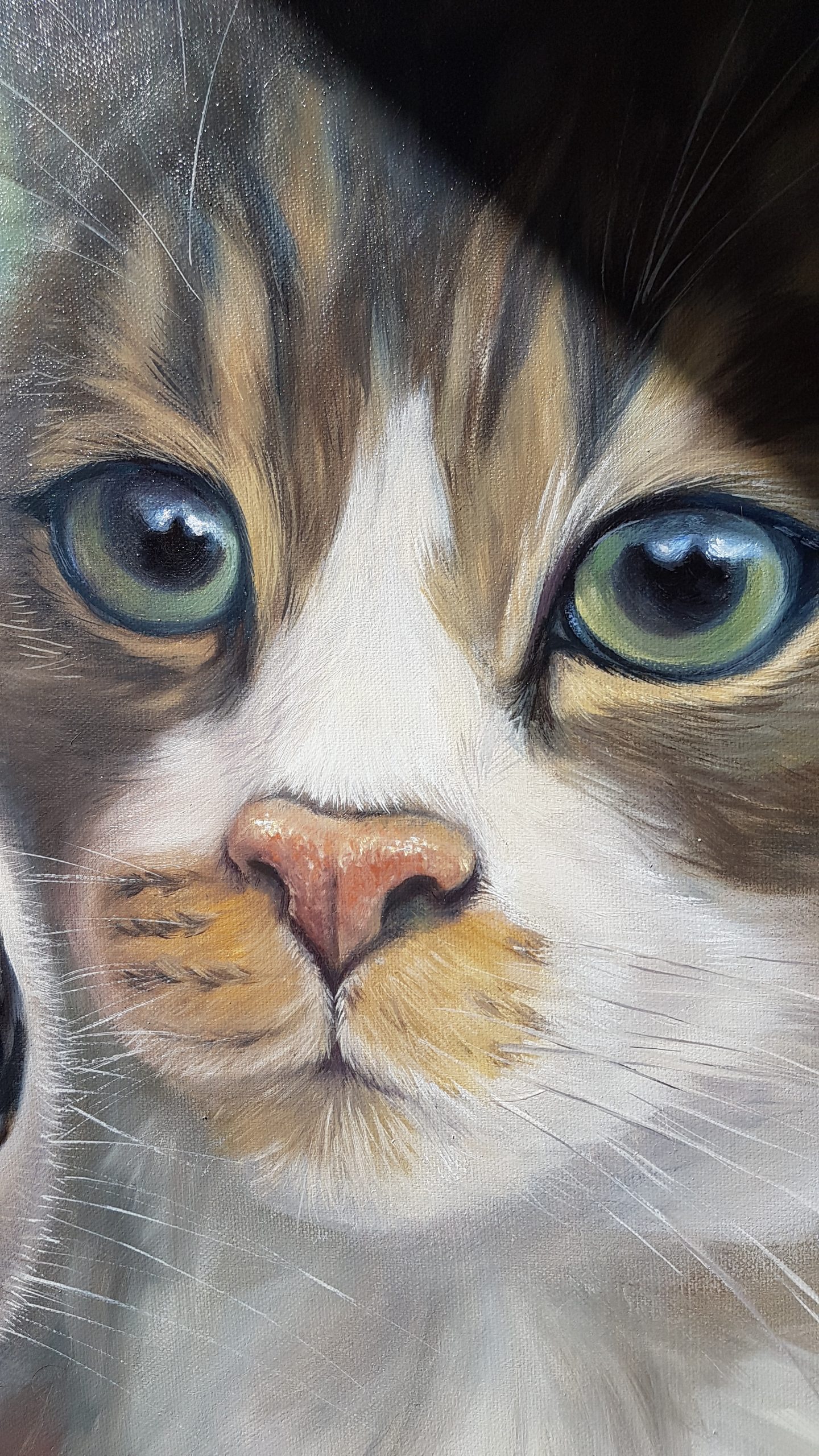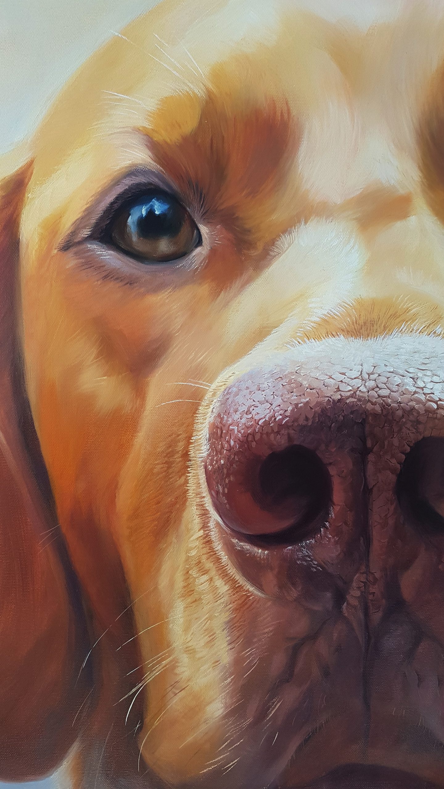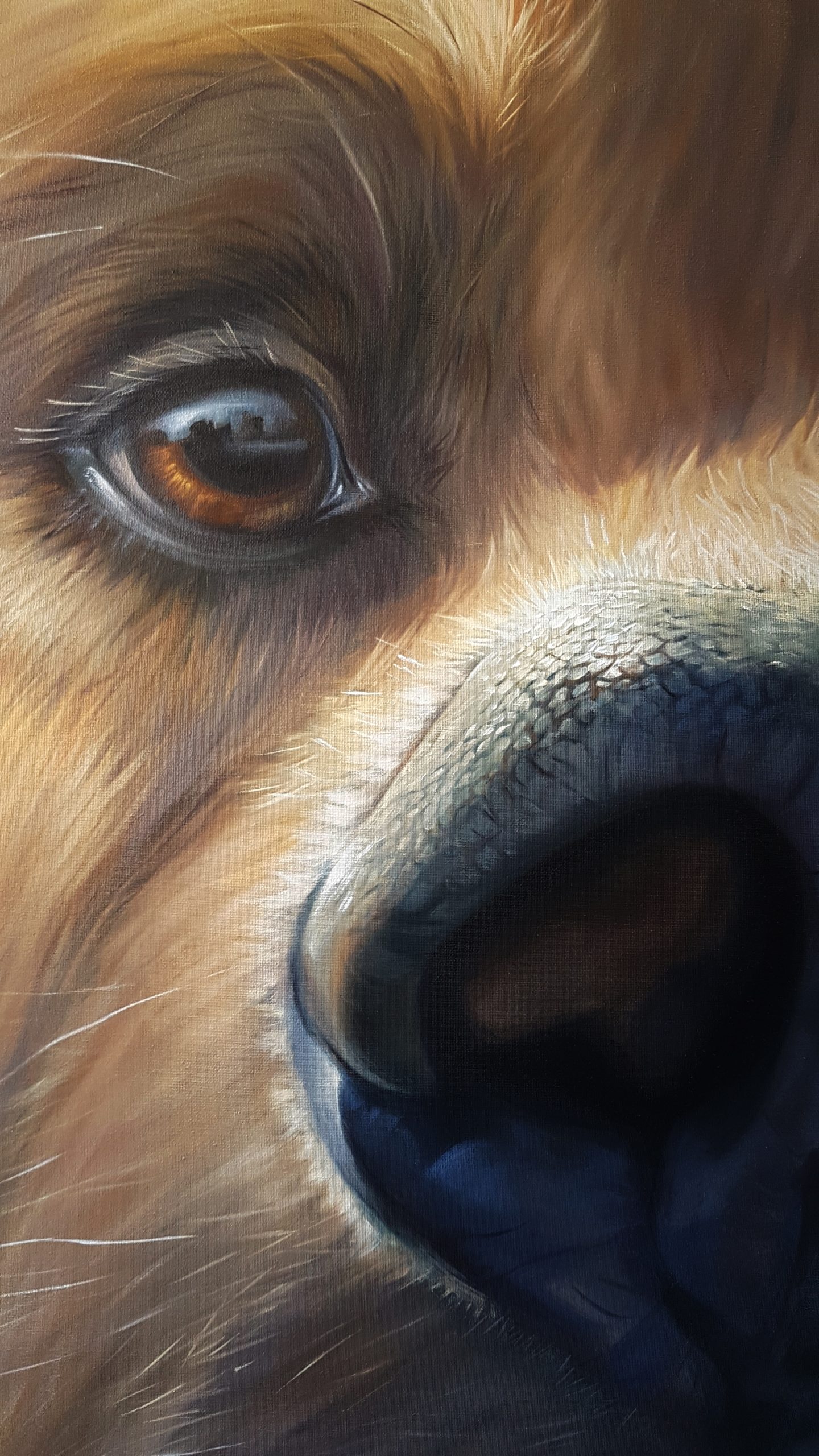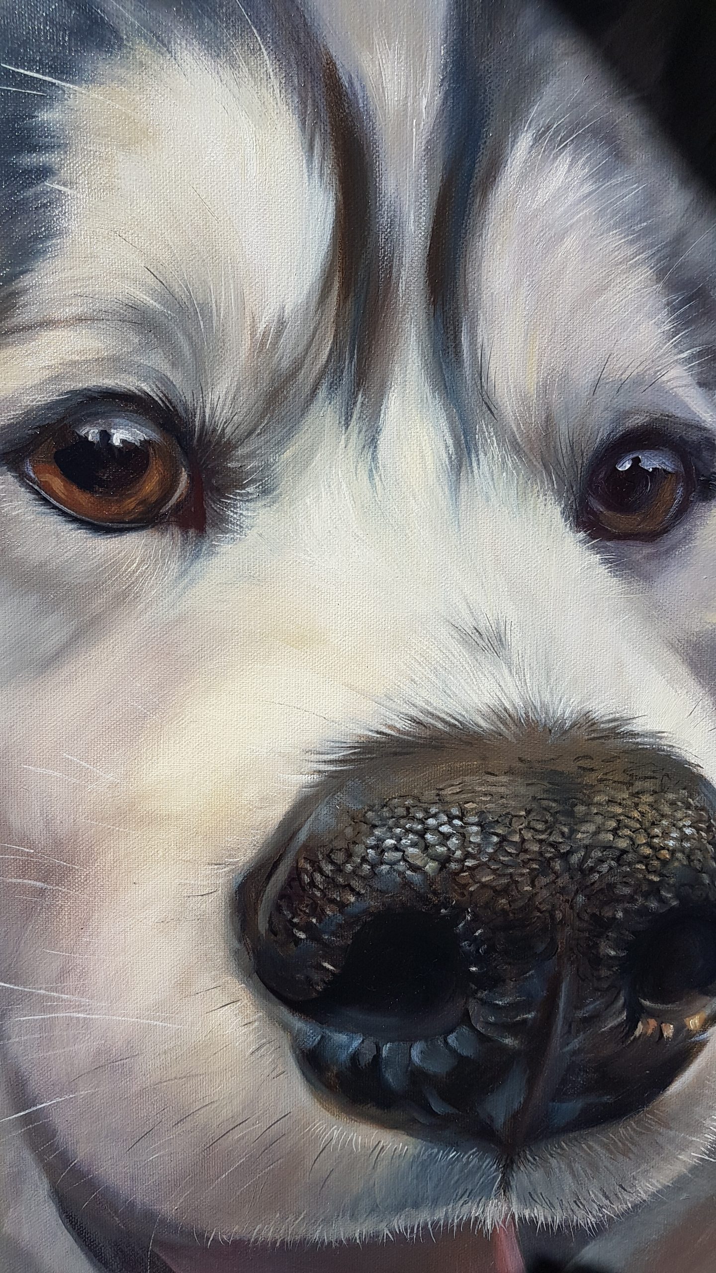 Pour les Truffes je travaille habituellement sur des formats carrés. Je déconseille les toiles de moins de 50×50 cm, en dessous de quoi on perd l’effet de proximité et d’intimité avec notre boule de poils préférée…