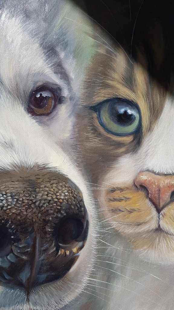 Il suffit de m’envoyer un message via le formulaire de contact, je peux m’adapter à toute demande : format, spécificités de l’animal (tous les animaux sont les bienvenus dans cette aventure!), composition à partir de photos même de mauvaise qualité… Il est également possible de peindre plusieurs animaux sur la même toile.