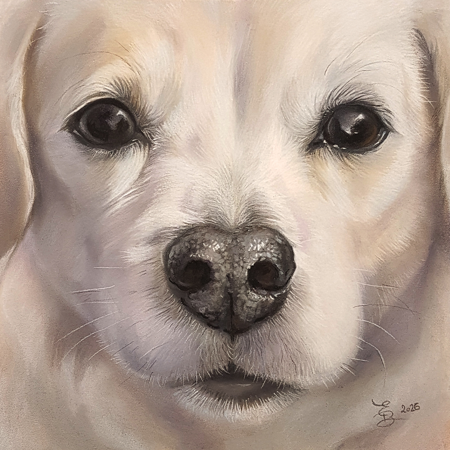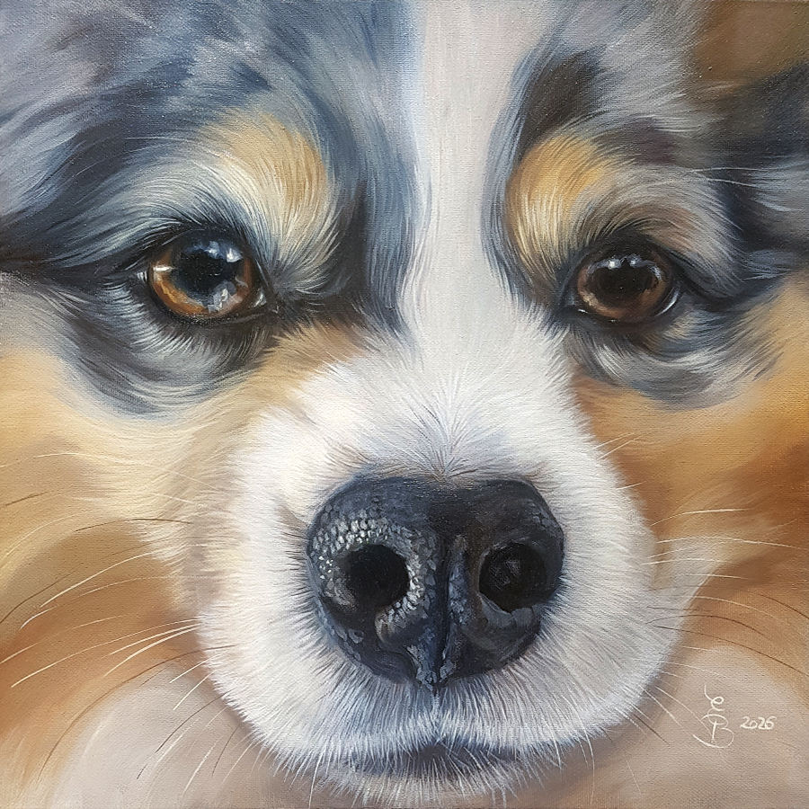 A la peinture à l’huile je déconseille les toiles de moins de 40×40 cm, en dessous de quoi on perd l’effet de proximité et d’intimité avec notre boule de poils préférée…